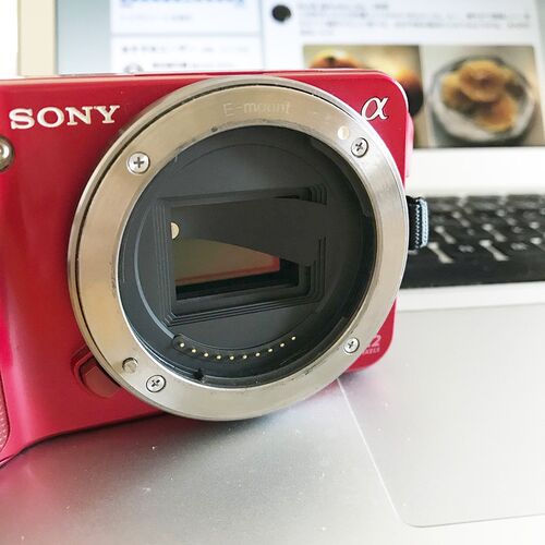 十年近く使って来たカメラ,Sonyのミラーレス一眼,NEX3が壊れました。シャッター幕がちぎれちゃった!?これは重症です。