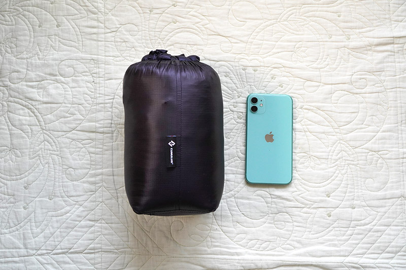今までの化繊シュラフと並べてみるとこれ。これでザックの容量をだいぶ節約できそうですね。