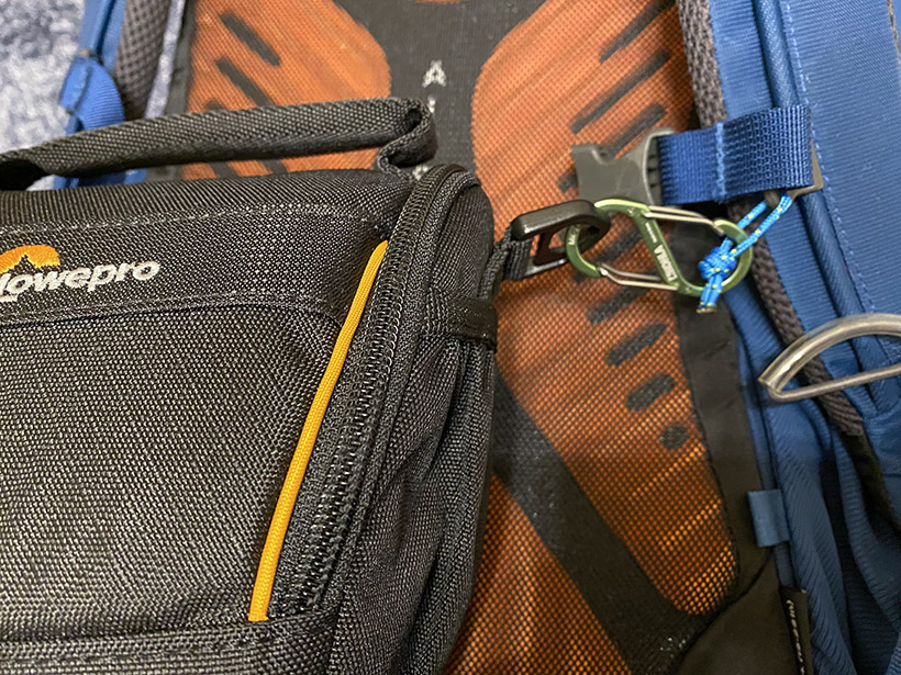 カメラ本体+標準ズームレンズをアドベンチュラに入れて運び,交換レンズ,予備バッテリー,リモートレリーズなどはザックにしまっておくつもり。