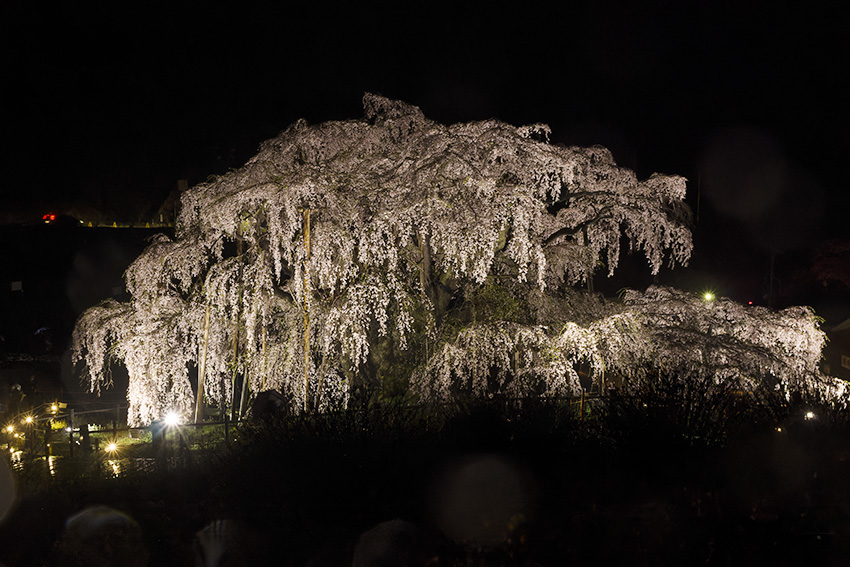 夜の闇の中に浮かび上がる滝桜を目にして,打たれたように固まってしまいます。こんな経験はそうそうあるものではありません。
